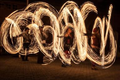 Keywords: juggle night photograph long exposure tracer artist street artists evening night winterthur fire torches swing dynamics light movement