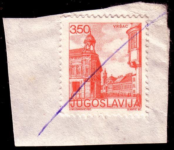 Keywords: Jugopencancellation1981.jpg Pen-cancelled postage stamp of Yugoslavia 1981 3 50 dinars Погашенная учкой почтовая ма ка Югославии 1981 год 3 50 дина а own collection 2008-05-20 Scanned and uploaded by Nickpo PD-Yugoslavia PD-SCGGov Stamps of Yugoslavia 1981 Pen cancels History of Vršac Serbia on stamps |