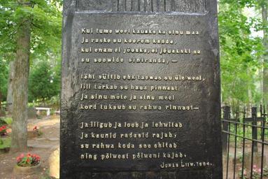 Keywords: Juhan Liiv 5.jpg ru Ф агмент памятника на могиле Юхана Лийва Кладбище го ода Алатскиви Фотог афия И ины Ивановой Фотог аф И ина Иванова 2009-08-28 Го од Алатскиви Та туский уезд Эстония Juhan Liiv Alatskivi cemetery
