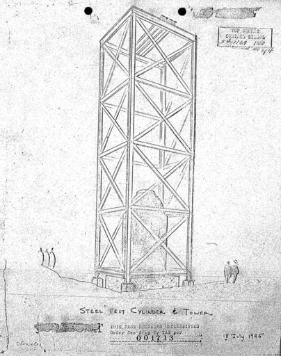 Keywords: Jumbo sketch (Trinity).jpg Sketch of the Jumbo test device and tower setup from the Trinity test Source Scanned from document in File 4 TRINITY Test at Alamogordo July 16 1945 in Correspondence top secret of the Manhattan Engineer District 1942-1946 microform Washington D C National Archives Microfilm Publications 1980 File from the National Archives developed by an employee of the Manhattan Project BadJPEG PD-USGov Trinity test |