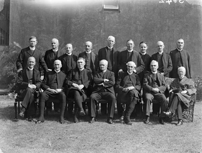 Keywords: church of ireland churchofireland cashel, emly, waterford and lismore cashelemlywaterfordandlismore bishop john frederick macneice johnfrederickmacneice robert miller robertmiller poole collection poolecollection glass negative glassnegative a.h. poole ahpoole arthur henri poole arthurhenripoole national library of ireland nationallibraryofireland monochrome blackandwhite team sport sport people outdoor black and white Church of Ireland group taken after the enthronement of the new Bishop of Cashel, Emly, Waterford and Lismore, John Frederick MacNeice (father of poet Louis MacNeice). See our pic for 22 June 1925 to see the previous incumbent of this position, Robert Miller, who had died on 13 March 1931. Date: 26 June 1931 NLI Ref.: P_WP_3842 Church of Ireland group taken after the enthronement of the new Bishop of Cashel, Emly, Waterford and Lismore, John Frederick MacNeice (father of poet Louis MacNeice). See our pic for 22 June 1925 to see the previous incumbent of this position, Robert Miller, who had died on 13 March 1931. Date: 26 June 1931 NLI Ref.: P_WP_3842 |