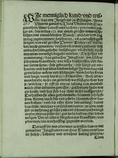 | Keywords: Jungfrawen zu Eszlingen 1030.jpg Jungfrawen zu Eszlingen_ jpg 1029 1031 Wie Gott so wunnderbarlich den vnmenschlichen grossen Bauch / an der Jungfrawen zu Eszlingen / offenbaret hat http //hardenberg jalb de/display_page php elementId 10888 JALB Emden 1551 Jungfraw zu Eszlingen PD-old-100 |