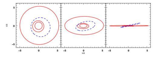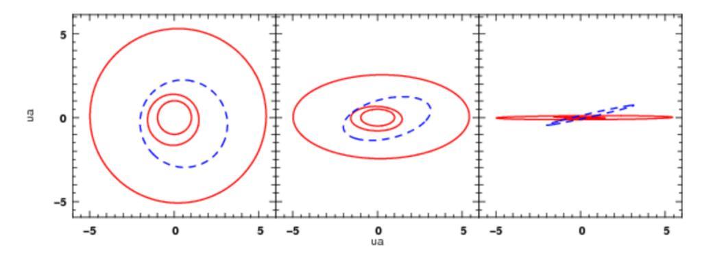 Keywords: Juno orbit.png Orbit of asteroid 3 Juno blue dashed line compared to those of Earth Mars and Jupiter red solid ellipses Viewing angles are 90° Earth's orbit is view face-on 30° and 0° Earth's orbit edge-on Orbite de l'astéroïde 3 Junon ligne pointillée blue comparée à celles de la Terre de Mars et de Jupiter ellipses rouges Les angles de vue du dessus l'orbite de la Terre est vue de face de biais à 30° et de côté l'orbite terreste est vue par la tranche self-made computation from orbital elements plotting and saving as Postscript using Yorick; convertion to PNG with convert 2008-03-13 Omegaiota 3 Juno |