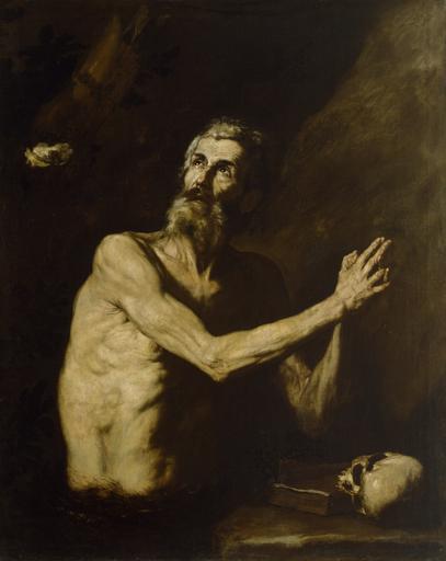 | Keywords: Jusepe de Ribera - Saint Paul the Hermit - Walters 37278.jpg Paul the Hermit was a 3rd-century saint who escaped persecution by retreating to the Egyptian desert where he lived in continual meditation until he was more than 100 years old The raven that sustained Paul by bringing him bread each day appears at the upper left The skull prompted his meditation on the brevity of human life Ribera was born in Spain but worked in Italy His use here of stark contrasts of light and dark made popular by the Italian painter Caravaggio 1571-1610 highlights the modeling of the saint's emaciated torso The thick paint and textured brushwork that evoke the wrinkled skin contribute to the realism of the image This is critical to the emotional impact on the viewer of Paul as a model of personal penance that was central to Counter Reformation Catholic devotion ~ 1638 Baroque Oil on canvas cm 132 7 106 7 accession number 37 278 37037 Don Marcello Massarenti Collection Rome Henry Walters city Baltimore Walters Art Museum Henry Walters Acquired by Henry Walters with the Massarenti Collection 1902 Signed and dated lower right Jusepe Ribera espanol valenciano F 1630 1636 1638 Going for Baroque The Walters Art Gallery Baltimore 1995-1996 place of origin Naples Italy Walters Art Museum license 2D Saint Paul the Hermit by José de Ribera Baroque paintings in the Walters Art Museum Paintings of bearded men 1638 oil on canvas paintings in the United States |