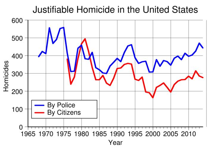 | Keywords: Justifiable homicide in the US.svg en Justifiable homicide in the United States from FBI UCR tables 14 and 15 http //www fbi gov/about-us/cjis/ucr/crime-in-the-u s/2012/crime-in-the-u s -2012/offenses-known-to-law-enforcement/expanded-offense/expandedoffensemainhttps //www fbi gov/about-us/cjis/ucr/crime-in-the-u s/2013/crime-in-the-u s -2013/offenses-known-to-law-enforcement/expanded-offense/expandedoffensemain_finalhttps //www fbi gov/about-us/cjis/ucr/crime-in-the-u s/2014/crime-in-the-u s -2014/offenses-known-to-law-enforcement/expanded-offense 1976-1998 datahttp //www prisonpolicy org/scans/bjs/ph98 pdf andhttp //dailykenn com/522 pdf 1968-1975 datahttp //www bjs gov/content/pub/ascii/ph98 txt de Totschlag aus Notwehr in den Vereinigten Staaten 2014-08-18 own Delphi234 other versions File United States Justifiable Homicide png current annually Generated with Wikimedia SVG Chart 1 cc-zero Uploaded with UploadWizard Homicide statistics |