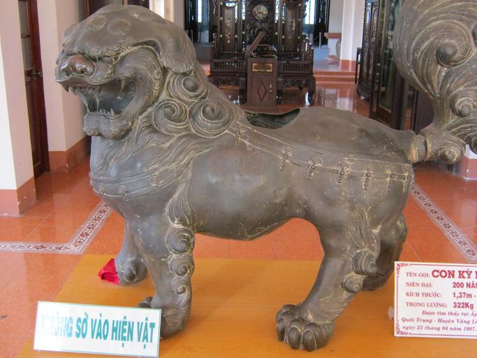 | Keywords: Kỳ lân ở Vĩnh Long.jpg vi Con kỳ lân bằng đồng có niên đại khoảng 200 năm kích thước 1 37m - 1 48 m nặng 322 kg hiện đang trưng bày tại Bảo tàng Vĩnh Long 2011-11-03 own Bùi Thụy Đào Nguyên thuydaonguyen vi cc-by-sa-3 0 Uploaded with UploadWizard Bronze of Vietnam Vinh Long Museum Statues of Qilin Pictures by Bùi Thụy Đào Nguyên 2 |