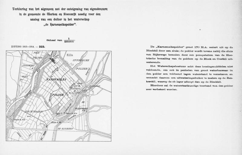 | Keywords: KAARTEN SGD - Verklaring van het algemeen nut der onteigening van eigendommen in de gemeente De Werken en Sleeuwijk noodig voor den aanleg van een duiker in het waterschap "de Karnemelkspolder".jpeg accession number en The individual creators of this map are unknown it was commissioned by the House of Representatives of the Netherlands De Karnemelkspolder groot 170 ha watert uit op de Bleekkil door een sluis; de polder wordt tevens nabij die sluis van rijkswege bemalen door een pompstation van de electrische bemaling van de polders op de Bleek en Oostkil uitwaterende help warp This map was digitized by the Institution Koninklijke Bibliotheek ; Koninklijke Bibliotheek 51 7666666666667 Werken en Sleeuwijk De 4 90833333333333 map date 1914 grond-onteigening systemen en bouwwerken t b v afwatering other fields other versions CC0 print date 1914 This map was commissioned and published by the Institution Tweede Kamer 1 25 000 This image in context http //www statengeneraaldigitaal nl/document id sgd mpeg21 19131914 0001068 pagina 2; Tweede Kamer KAARTEN SGD - Verklaring van het algemeen nut der onteigening van eigendommen in de gemeente De Werken en Sleeuwijk noodig voor den aanleg van een duiker in het waterschap de Karnemelkspolder wikidata location wikidata title Uploaded with GWToolset KAARTEN SGD - Verklaring van het algemeen nut der onteigening van eigendommen in de gemeente De Werken en Sleeuwijk noodig voor den aanleg van een duiker in het waterschap de Karnemelkspolder http //resolver kb nl/resolve urn sgd mpeg21 19131914 0001068 0002 image |
