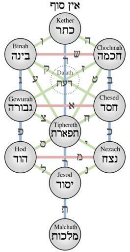 Keywords: Kabbalistic Tree of Life (Sephiroth) 2.svg Tree of life with the 10 Sephiroth and the 22 Hebrew characters as they are presented in the Sefer Yetzirah Book of Formation The different colors of the lines represent the three groups of characters ;red the 3 mother letters ;blue the 7 double letters ;green the 12 simple letters own -- an equivalent graphic to File Tree of Life Sephiroth svg with symmetric geometry and attempting to be more legible created by modifying PD image File Kabbalistic Tree of Life Sephiroth svg Kabbalistic Tree of Life Sephiroth svg 2014-12-25 AnonMoos Tree of life Kabbalah |