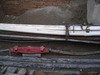| Keywords: Kabelverlegung-Tiefbau.JPG Cables on a construction site Kabelverlegung auf einer Baustelle own 2007-03-22 User Mattes Electric cables Taken with Nikon Coolpix L2 Work by Mattes 2007 User Mattes/Contributions/Topics/Technology Underground works construction |