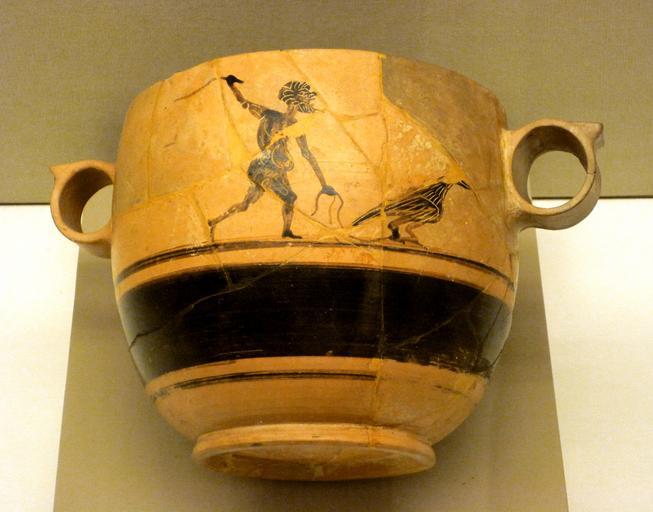 | Keywords: Kabireic skyphos Allard Pierson Museum 582.jpg Pygmie hunting birds or Heracles and the Stymphalian Birds Kabeiric skyphos end of 5th century BC Found near Thebes Allard Pierson Museum Inv 582 Pygmée chassant des oiseaux ou Héraclès et les oiseaux du lac Stymphale Skyphos cabirien fin du Ve siècle av J -C Trouvé près de Thèbes Allard Pierson Museum Inv 582 Pygmee die vogel voortdrijft of Herakles en de Stymphalische vogels Kabirenbeker eind 5e eeuw v Chr Gevonden bij Thebe Allard Pierson Museum Inv 582 own 2010-08-14 Bibi Saint-Pol Heracles in ancient Greek pottery Pygmies mythology Stymphalian birds in ancient Greek pottery Birds in ancient Greek pottery Kabeiric skyphoi Greek antiquities in the Allard Person Museum 5th-century BC pottery |