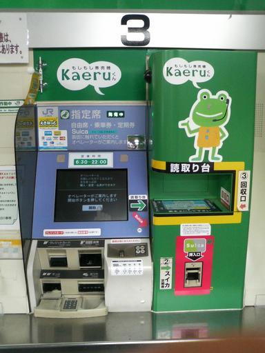 | Keywords: Kaeru-Kun.jpg Ome line Nishi-Tachikawa Station 梅線西立 駅設置の もしもし券売機Kaeruくん Own Hitachi-Train <span class signature-talk >talk</span> 2010-03-25 File Kaeru-Kun Kita-Hachioji jpg Rail ticket machines in Japan JR MARS system Nishi-Tachikawa Station Suica Frogs in art of Japan |