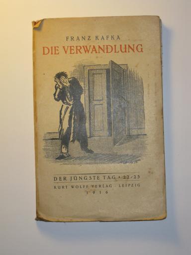 Keywords: Kafka Verwandlung 016.jpg en Title of the novel of Kafka Die Verwandlung de Titelblatt der Erstausgabe von Die Verwandlung 1916 own original text eigenes Foto 1 Gottfried Plehn Künstler der Zeichnung unbekannt 1916 PD-old Kafka Die Verwandlung Book covers |