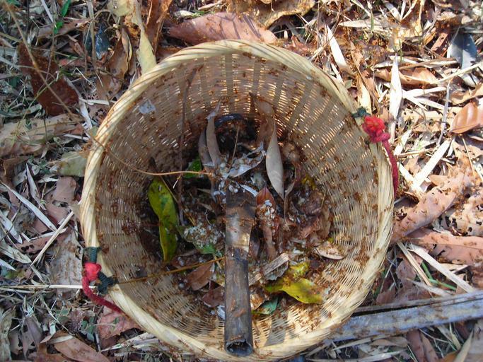 Keywords: Kai Mot, Thailand 2007.jpg collected ant eggs for human nutrition eggs taken from trees seen in Thailand own 2007-02-22 User Mattes See also <gallery> Image Kai Mot - Teller JPG Ready to eat </gallery> Insects in Thai cuisine Ant eggs as food Wicker baskets Knives Taken with Nikon Coolpix L2 Work by Mattes 2007 User Mattes/Contributions/Topics/Thailand User Mattes/Contributions/Topics/Nutrition Hymenoptera of Thailand