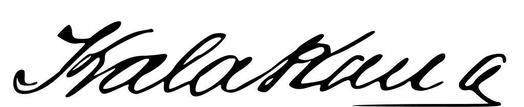 | Keywords: Kalakaua's signature.svg en King Kalākaua's signature from his book The legends and myths of Hawaii The fables and folk-lore of a strange people Kalakaua's_signature jpg 2011-04-26 13 55 UTC Kalakaua's_signature jpg Kalākaua derivative work Malyszkz <span class signature-talk >talk</span> Zwektoryzowano Krzysztof Zajączkowski malyszkz Kalakaua's_signature jpg PD-old-100 Original upload log This image is a derivative work of the following images File Kalakaua's_signature jpg licensed with Cc-pd-mark-footer PD-old-100 2011-01-08T16 53 23Z KAVEBEAR 320x66 16497 Bytes <nowiki> en King Kalākaua's signature from his book The legends and myths of Hawaii The fables and folk-lore of a strange people From http //books google com/books id smIuAAAAYAAJ dq kaiana</nowiki> Uploaded with derivativeFX 1888 in Hawaii Signatures of Hawaiian monarchs Kalākaua Signature |