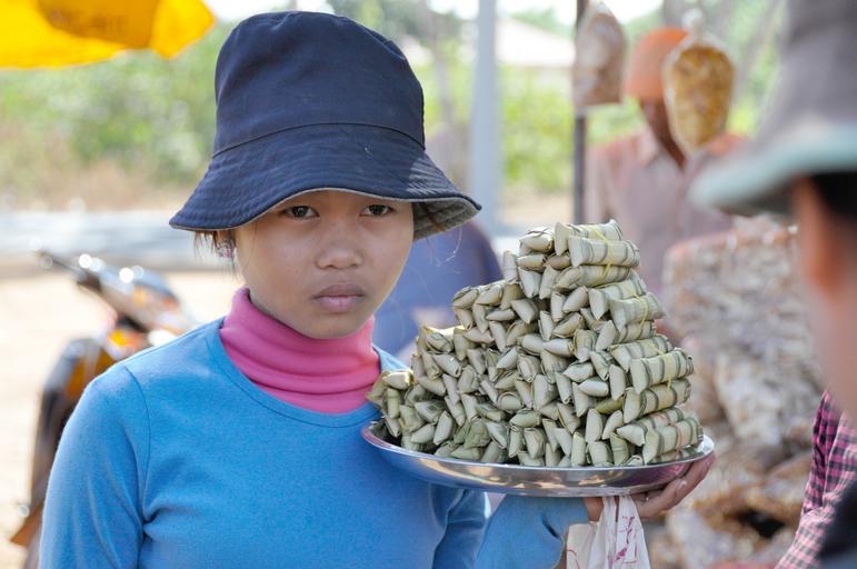 Keywords: kambotscha girl face market seller street food