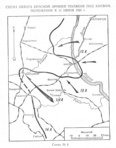 | Keywords: Kamenev map 6.jpg en Kiev operation of the Red Army Situation 11 06 1920 ru Схема охвата К асной А мией поляков под Киевом Положение к 11 июня 1920 г С С Каменев Бо ьба с белой Польшей Военный вестник 1922 N12 ст 7-17 Записки о г ажданской войне и военном ст оительстве Воениздат 1963 С С Каменев 1922 PD-old Maps of the Polish-Soviet War |