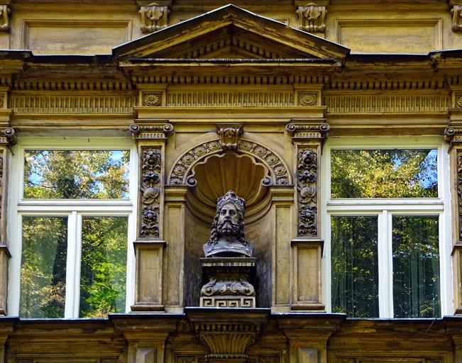 Keywords: kamienica the window the statue of figure kraków monument building architecture old historical