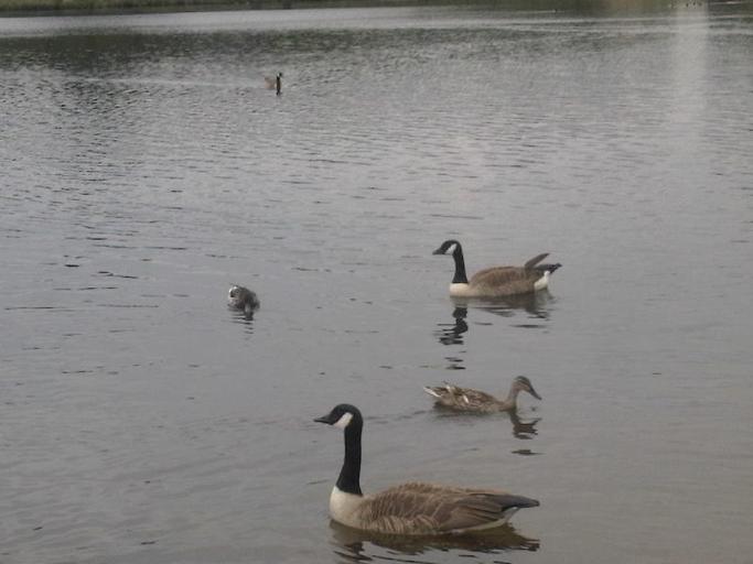 Keywords: Kanadai ludak5.jpg en Two Canada Geese Branta canadensis and a duck in England hu Ket kanadai lúd Branta canadensis es egy rece Angliaban Hampstead Heath Park Dénes Emőke 2010 Branta canadensis feral pairs swimming