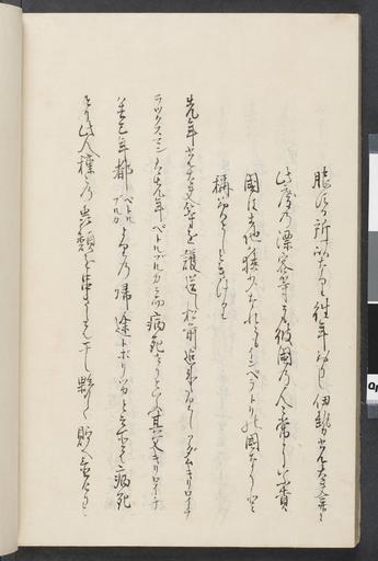 | Keywords: Kankai ibun, (1807), vol. 8 (RBM-910-41-O88k-v8~096).jpg and travel Repository Email specol usc edu Geographic Subject Country Russia 1807 Atsuki Gentaku 1757-1827; a SSaeSS>>cae2C/ 1757-1827; Shimura KAkyA 1767-1843 http //digitallibrary usc edu/cdm/ref/collection/p15799coll58/id/20278 <br />1 File Kankai ibun 1807 vol 8 RBM-910-41-O88k-v8~001 jpg <br />2 File Kankai ibun 1807 vol 8 RBM-910-41-O88k-v8~002 jpg <br />3 File Kankai ibun 1807 vol 8 RBM-910-41-O88k-v8~003 jpg <br />4 File Kankai ibun 1807 vol 8 RBM-910-41-O88k-v8~004 jpg <br />5 File Kankai ibun 1807 vol 8 RBM-910-41-O88k-v8~005 jpg <br />6 File Kankai ibun 1807 vol 8 RBM-910-41-O88k-v8~006 jpg <br />7 File Kankai ibun 1807 vol 8 RBM-910-41-O88k-v8~007 jpg <br />8 File Kankai ibun 1807 vol 8 RBM-910-41-O88k-v8~008 jpg <br />9 File Kankai ibun 1807 vol 8 RBM-910-41-O88k-v8~009 jpg <br />10 File Kankai ibun 1807 vol 8 RBM-910-41-O88k-v8~010 jpg <br />11 File Kankai ibun 1807 vol 8 RBM-910-41-O88k-v8~011 jpg <br />12 File Kankai ibun 1807 vol 8 RBM-910-41-O88k-v8~012 jpg <br />13 File Kankai ibun 1807 vol 8 RBM-910-41-O88k-v8~013 jpg <br />14 File Kankai ibun 1807 vol 8 RBM-910-41-O88k-v8~014 jpg <br />15 File Kankai ibun 1807 vol 8 RBM-910-41-O88k-v8~015 jpg <br />16 File Kankai ibun 1807 vol 8 RBM-910-41-O88k-v8~016 jpg <br />17 File Kankai ibun 1807 vol 8 RBM-910-41-O88k-v8~017 jpg <br />18 File Kankai ibun 1807 vol 8 RBM-910-41-O88k-v8~018 jpg <br />19 File Kankai ibun 1807 vol 8 RBM-910-41-O88k-v8~019 jpg <br />20 File Kankai ibun 1807 vol 8 RBM-910-41-O88k-v8~020 jpg <br />21 File Kankai ibun 1807 vol 8 RBM-910-41-O88k-v8~021 jpg <br />22 File Kankai ibun 1807 vol 8 RBM-910-41-O88k-v8~022 jpg <br />23 File Kankai ibun 1807 vol 8 RBM-910-41-O88k-v8~023 jpg <br />24 File Kankai ibun 1807 vol 8 RBM-910-41-O88k-v8~024 jpg <br />25 File Kankai ibun 1807 vol 8 RBM-910-41-O88k-v8~025 jpg <br />26 File Kankai ibun 1807 vol 8 RBM-910-41-O88k-v8~026 jpg <br />27 File Kankai ibun 1807 vol 8 RBM-910-41-O88k-v8~027 jpg <br />28 File Kankai ibun 1807 vol 8 RBM-910-41-O88k-v8~028 jpg <br />29 File Kankai ibun 1807 vol 8 RBM-910-41-O88k-v8~029 jpg <br />30 File Kankai ibun 1807 vol 8 RBM-910-41-O88k-v8~030 jpg <br />31 File Kankai ibun 1807 vol 8 RBM-910-41-O88k-v8~031 jpg <br />32 File Kankai ibun 1807 vol 8 RBM-910-41-O88k-v8~032 jpg <br />33 File Kankai ibun 1807 vol 8 RBM-910-41-O88k-v8~033 jpg <br />34 File Kankai ibun 1807 vol 8 RBM-910-41-O88k-v8~034 jpg <br />35 File Kankai ibun 1807 vol 8 RBM-910-41-O88k-v8~035 jpg <br />36 File Kankai ibun 1807 vol 8 RBM-910-41-O88k-v8~036 jpg <br />37 File Kankai ibun 1807 vol 8 RBM-910-41-O88k-v8~037 jpg <br />38 File Kankai ibun 1807 vol 8 RBM-910-41-O88k-v8~038 jpg <br />39 File Kankai ibun 1807 vol 8 RBM-910-41-O88k-v8~039 jpg <br />40 File Kankai ibun 1807 vol 8 RBM-910-41-O88k-v8~040 jpg <br />41 File Kankai ibun 1807 vol 8 RBM-910-41-O88k-v8~041 jpg <br />42 File Kankai ibun 1807 vol 8 RBM-910-41-O88k-v8~042 jpg <br />43 File Kankai ibun 1807 vol 8 RBM-910-41-O88k-v8~043 jpg <br />44 File Kankai ibun 1807 vol 8 RBM-910-41-O88k-v8~044 jpg <br />45 File Kankai ibun 1807 vol 8 RBM-910-41-O88k-v8~045 jpg <br />46 File Kankai ibun 1807 vol 8 RBM-910-41-O88k-v8~046 jpg <br />47 File Kankai ibun 1807 vol 8 RBM-910-41-O88k-v8~047 jpg <br />48 File Kankai ibun 1807 vol 8 RBM-910-41-O88k-v8~048 jpg <br />49 File Kankai ibun 1807 vol 8 RBM-910-41-O88k-v8~049 jpg <br />50 File Kankai ibun 1807 vol 8 RBM-910-41-O88k-v8~050 jpg <br />51 File Kankai ibun 1807 vol 8 RBM-910-41-O88k-v8~051 jpg <br />52 File Kankai ibun 1807 vol 8 RBM-910-41-O88k-v8~052 jpg <br />53 File Kankai ibun 1807 vol 8 RBM-910-41-O88k-v8~053 jpg <br />54 File Kankai ibun 1807 vol 8 RBM-910-41-O88k-v8~054 jpg <br />55 File Kankai ibun 1807 vol 8 RBM-910-41-O88k-v8~055 jpg <br />56 File Kankai ibun 1807 vol 8 RBM-910-41-O88k-v8~056 jpg <br />57 File Kankai ibun 1807 vol 8 RBM-910-41-O88k-v8~057 jpg <br />58 File Kankai ibun 1807 vol 8 RBM-910-41-O88k-v8~058 jpg <br />59 File Kankai ibun 1807 vol 8 RBM-910-41-O88k-v8~059 jpg <br />60 File Kankai ibun 1807 vol 8 RBM-910-41-O88k-v8~060 jpg <br />61 File Kankai ibun 1807 vol 8 RBM-910-41-O88k-v8~061 jpg <br />62 File Kankai ibun 1807 vol 8 RBM-910-41-O88k-v8~062 jpg <br />63 File Kankai ibun 1807 vol 8 RBM-910-41-O88k-v8~063 jpg <br />64 File Kankai ibun 1807 vol 8 RBM-910-41-O88k-v8~064 jpg <br />65 File Kankai ibun 1807 vol 8 RBM-910-41-O88k-v8~065 jpg <br />66 File Kankai ibun 1807 vol 8 RBM-910-41-O88k-v8~066 jpg <br />67 File Kankai ibun 1807 vol 8 RBM-910-41-O88k-v8~067 jpg <br />68 File Kankai ibun 1807 vol 8 RBM-910-41-O88k-v8~068 jpg <br />69 File Kankai ibun 1807 vol 8 RBM-910-41-O88k-v8~069 jpg <br />70 File Kankai ibun 1807 vol 8 RBM-910-41-O88k-v8~070 jpg 220px left 220px left 220px left 220px left 220px left 220px left 220px left 220px left 220px left 220px left 220px left 220px left 220px left 220px left 220px left 220px left 220px left 220px left 220px left 220px left 220px left 220px left 220px left 220px left 220px left 220px left 220px left 220px left 220px left 220px left 220px left 220px left 220px left 220px left 220px left 220px left 220px left 220px left 220px left 220px left 220px left 220px left 220px left 220px left 220px left 220px left 220px left 220px left 220px left 220px left clear <br />122 File Kankai ibun 1807 vol 8 RBM-910-41-O88k-v8~122 jpg <br />123 File Kankai ibun 1807 vol 8 RBM-910-41-O88k-v8~123 jpg <br />124 File Kankai ibun 1807 vol 8 RBM-910-41-O88k-v8~124 jpg <br />125 File Kankai ibun 1807 vol 8 RBM-910-41-O88k-v8~125 jpg <br />126 File Kankai ibun 1807 vol 8 RBM-910-41-O88k-v8~126 jpg <br />127 File Kankai ibun 1807 vol 8 RBM-910-41-O88k-v8~127 jpg <br />128 File Kankai ibun 1807 vol 8 RBM-910-41-O88k-v8~128 jpg <br />129 File Kankai ibun 1807 vol 8 RBM-910-41-O88k-v8~129 jpg <br />130 File Kankai ibun 1807 vol 8 RBM-910-41-O88k-v8~130 jpg <br />131 File Kankai ibun 1807 vol 8 RBM-910-41-O88k-v8~131 jpg <br />132 File Kankai i