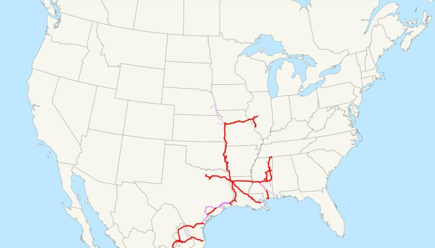 | Keywords: Kansas City Southern Railway system map (US only).svg This is a map of the Kansas City Southern Railway as of 2009 with trackage rights in purple haulage rights are lighter The map shows only the U S and northern Mexico for ease of comparison with the other Class I system maps Email me if you would like a copy of the GIS data I created modified from Bureau of Transportation Statistics North American Transportation Atlas Data or if you see any errors 2009-02-23 own assumed NE2 System maps of U S railroads Kansas City Southern Railway |