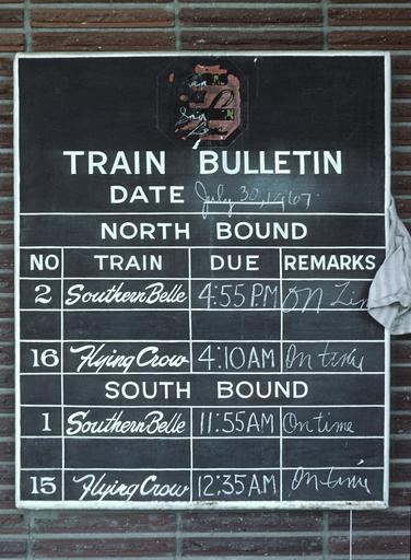 | Keywords: text sign signboard plaque outdoor Train Board on outside of the depot. These are Roger Puta's photos. Train Board on outside of the depot. These are Roger Puta's photos. Train Board on outside of the depot.