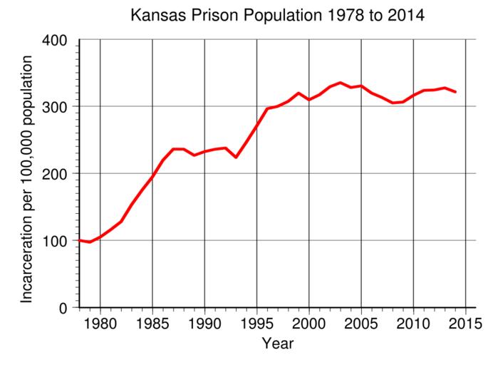| Keywords: Kansas Prison Population.svg en Kansas prison incarceration rate per 100 000 population from 1978 to 2014 Data from http //www bjs gov/index cfm ty nps BJS 2016-05-11 own Delphi234 other versions current annually Generated with Wikimedia SVG Chart SVG Chart/box cc-zero Prisons in Kansas Imprisonment and detention rates in the United States |