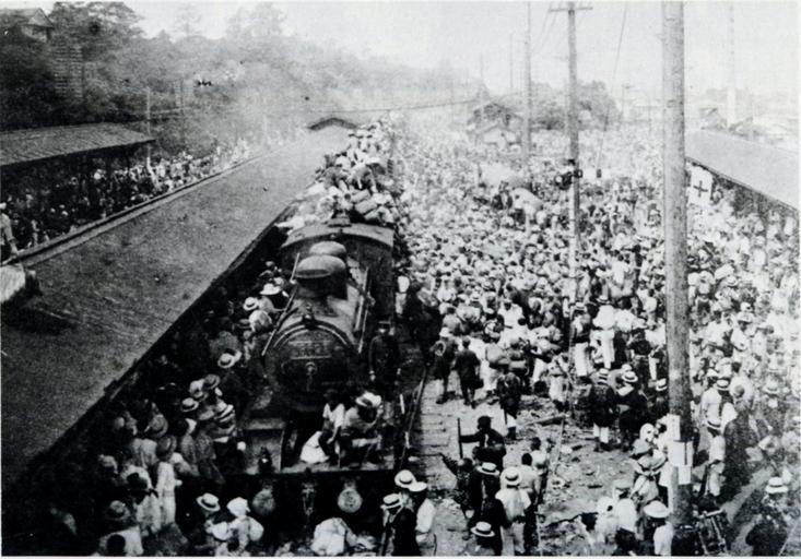 | Keywords: Kanto Great Earth Quake Nippori Station.jpg ja 関 大 災の被災 からの避難列車 日暮里駅にて大宮方に向かって撮影 撮影日記載なし 関 方大 火災記念写 帖 鉄道 京鉄道 1924年 大正13年 発行 図書館 京都立中央図書館 墨田区立図書館 日野市立図書館 港区立図書館 蔵 http //www5 ocn ne jp/~poppy/sub68 htm http //www jsce or jp/library/page/report shtml 学会附属 図書館デジタルアーカイブス内http //library jsce or jp/Image_DB/shinsai/kanto/jsce_report/index html 関 大 害調査報告掲載写 学会 1927年 昭和2年 発行 雄 堂出版が1984年に復刻版発行 内 http //library jsce or jp/Image_DB/shinsai/kanto/jsce_report/02_04/02_04_0191 html にも掲載されている 同時に取られた別の写 の方が構内の状態が分かりやすい 1923-09 日 国 鉄道百年写 史P208 Author 122x180px PD-Japan-oldphoto Nippori Station 8620 steam locomotives 1923 Great Kantō earthquake Stations in Tokyo prefecture photographed before 1956 Steam locomotive surfing Passenger railcar surfing Roof riding trains Side riding trains Front riding trains Train surfing in Japan Train surfing events People at train stations History of train surfing |