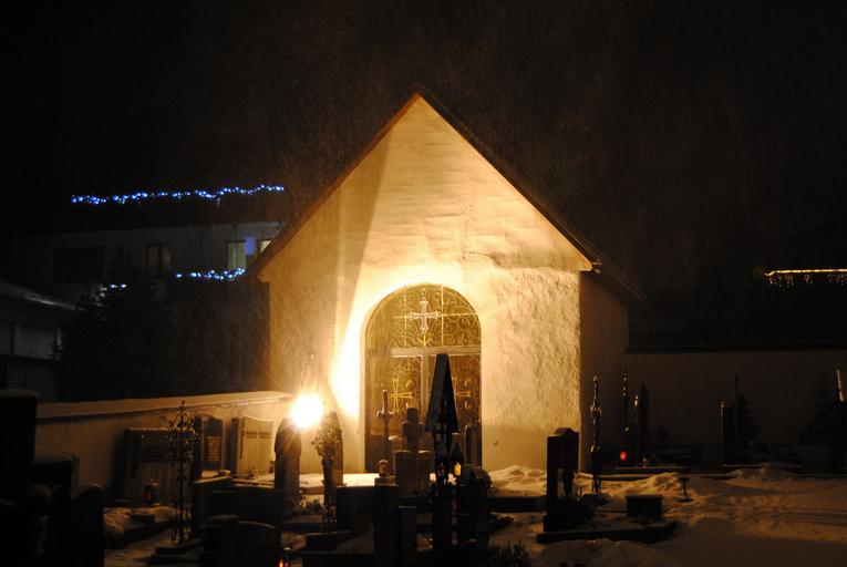 | Keywords: Kapelle der Kirche Nesselwängle.jpg Die kleine Kapelle in rot-orangenes Licht getaucht auf dem Friedhof neben der Kirche des Ortes Nesselwängle Tirol Österreich am 1 Januar 2010 abends im dichten Schneefall The small chapel at the cemetery next to the church of W Nesselwängle Tyrol state Tyrol Austria at the evening in a small snow flurry D3000 own kaʁstn <small>Disk/Cat</small> 2010-01-01 Other versions 47 485304 10 60941 region AT-7_type landmark Photographs by Carschten Taken with AF-S DX Zoom-Nikkor 18-55mm/3 5-5 6G ED II Cemetery chapel at Mariä Himmelfahrt Nesselwängle Snow flurry Buildings and structures in Austria at night |