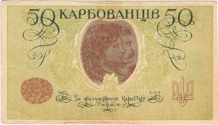MAKE A MEME View Large Image Karbovanets 50 1918 a.jpg This is front face To see back face go to Image Karbovanets 50 1918 b jpg The Banknote of The State Treasury The period of circulation since April 1918 till may 1919 Size from 73 5x130 mm till 77x133 mm witout ...