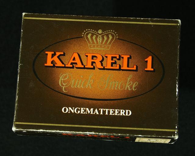 Keywords: Karel 1 Quick Smoke sigarendoos, foto1.JPG Very old packaging of a Dutch product that is not produced and/or sold any more own 2014-03-16 16 08 54 Alf van Beem CC-zero Trademarked Karel I cigars