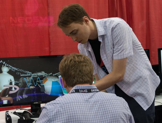 View Original:Karel_Hulec_(NeosVR)_showing_Neos:_The_Universe_demo_at_SVVR_2015.jpg (6480x4912)