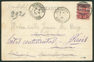 Keywords: Karl F. Wunder PC Gruss von der Deutsch-Afrikanisch-Chinesischen Messe im Palmengarten! Hannover, m 9. u. 10 November 1901 Adressseite.jpg Adressseite der 1901 von Periguex zum Hotel Continental in Paris versandten Ansichtskarte Scan durch Bernd Schwabe in Hannover vom vorgelegten Original 2011-05-31 Creator Karl Friedrich Wunder and others <gallery> File Karl F Wunder PC Gruss von der Deutsch-Afrikanisch-Chinesischen Messe im Palmengarten Hannover m 9 u 10 November 1901 Bildseite jpg Bildseite der Ansichtskarte mit Trachten aus Deutschland Afrika und China </gallery> PD-old Backsides of Karl Friedrich Wunder postcards |