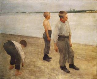 | Keywords: Károly Ferenczy - Boys Throwing Pebbles into the River.jpg Artwork Creator Károly Ferenczy 1890 Oil on canvas Size cm 149 119 Institution Hungarian National Gallery LangSwitch Buildings C-B 1st Floor B-C épület I emelet accession number FK3778 Online Gallery http //www mng hu/en/search/725 page object history credit line http //www hung-art hu/kep/f/ferenc_k/muvek/1/ hung-art hu 128px PD-old-auto-1923 1917 DEFAULTSORT Ferenczy Károly - Boys Throwing Pebbles into the River Paintings by Károly Ferenczy in the Hungarian National Gallery 1890 paintings in Hungary Paintings of boys Danube in art Throwing |
