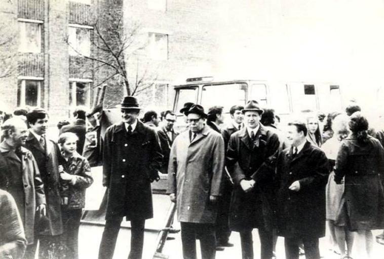 Keywords: Kartashov Valentin3.jpg en Famous Russia construction engineer Valentin Kartashov in the middle with colleagues Saransk Reconstructed amateur photo 1976 own Jarmanj Turtash 2010-12-13 Construction in Russia Saransk People of Russia