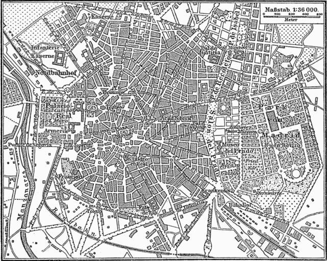 Keywords: Karte Madrid MKL1888.png PD-Meyers Maps of cities Meyers Konversationslexikon 4th edition ~ old maps of Madrid spain in the 1880s 1888