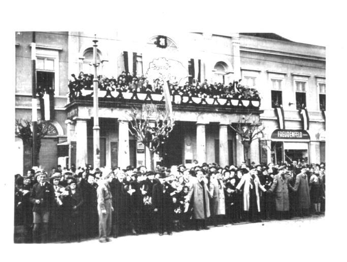 | Keywords: Kassa, 1938. november 10-11 (2).tif hu A fénykép 1938 november 10 -én vagy 11 -én készült Magyar Királyság Kassa Kassa köszönti a bevonuló magyar hadsereget Szöveg a képeslap hátoldalán A FELVIDÉK FELSZABADULÁSÁNAK EMLÉKÉRE Kassa 1938 NOV 10-11Vitéz nagybányai Horthy Miklós Magyarország Kormányzója Szatmárnémetiben 1940 szept 5 Magyar Film Iroda Kiadása Sárai Budapest Rotációs Fényképsokszorosító Alkalmi bélyegzés Kassa visszatért A magyar honvédség november 10-én vette át Kassát a lakosság örömujjongása közepette Wirth Gyula építészmérnök a Magyar Nemzet Tanács elnöke fogadja a magyar honvédséget Kassa szabad királyi város Magyar Nemzeti Tanácsa élén boldogságtól túláradó szívvel köszöntöm önt altábornagy úr vitéz honvédségünk élén mondja vitéz Littay-Lichtenecker András altábornagynak a miskolci 7 vegyesdandár parancsnokának Forrás Metapolisz Images ©© Derzsi Elekes Andor Budapest 2014 A kép és filmfelvétel egészben vagy részletekben másolását bármilyen úton történő sokszorosítását és felhasználását a szerző ellenérték nélkül jogutódjaira is kihatóan megengedi Az engedély kiterjed a kereskedelmi célú hasznosításra is Kéri azonban a felhasználás során feltüntetni hogy a kép forrása a Metapolisz Images A Metapolisz sorozat valamennyi képe és filmje Creative Commons alatti valamint kereskedelmi - for profit - célra is felhasználható Ajánlott hivatkozás Derzsi Elekes Andor Metapolisz DVD line http //nektar oszk hu/en/manifestation/2623913 Forrás Balassa Zoltán Kassa és 1938 békés novembere http //www felvidek ma/kapcsolat/tajolo/multidezo/42564-kassa-es-1938-bekes-novembere hozzáférés 2014 01 17 Horthy kassai bevonulása http //www youtube com/watch v tD5VxkOl-A4 hozzáférés 2014 01 17 Észak felé - A visszatért Kassa első napja 19381111 http //www youtube com/watch v fW_5lgNWT_4 hozzáférés 2014 01 17 2014-01-17 19 38 53 Metapolisz Images Sárai Budapest Rotációs Fényképsokszorosító scanned by Derzsi Elekes Andor Custom license marker 2014 01 17 PD-old 1938 in Košice Metapolisz Miklós Horthy Uploaded with UploadWizard First Vienna Award 1938 photographs Photos by Elekes Andor |