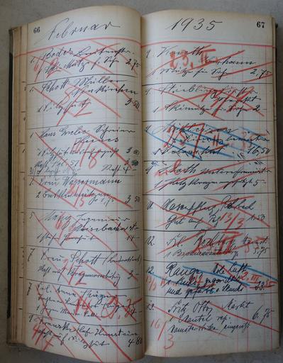 Keywords: Kassen-Einnahmen des Kürschners, Hutmachers und Präparators Biel in Bad Hersfeld, Mai 1934 bis März 1939 035.jpg 034 036