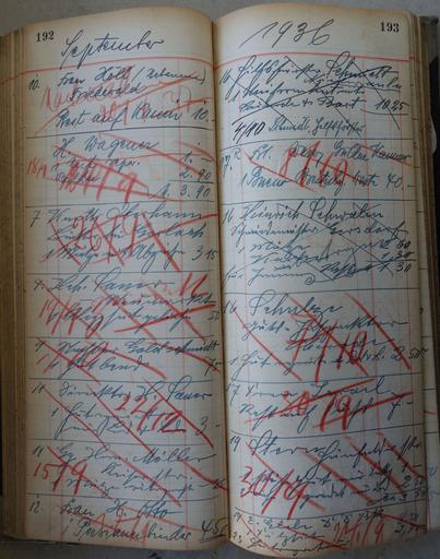 Keywords: Kassen-Einnahmen des Kürschners, Hutmachers und Präparators Biel in Bad Hersfeld, Mai 1934 bis März 1939 098.jpg 097 099
