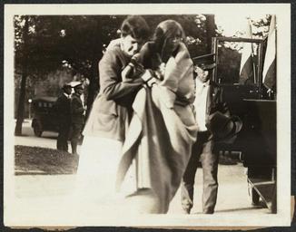 | Keywords: Kate Heffelfinger after her release 276025v.jpg ~ 1917 Photograph of a woman escorting Kate Heffelfinger wrapped in blanket outside near a car after release from jail Title transcribed from item Kate Heffelfinger of Shamokin Penn was an art student and NWP activist She was sentenced to six months in District Jail for picketing Oct 15 1917; another month was later added to her sentence for a previous offense In August 1918 she was sentenced to 15 days for participating in a Lafayette Square meeting; in January 1919 she was sentenced to five days for participation in a watchfire demonstration Source Doris Stevens Jailed for Freedom New York Boni and Liveright 1920 361 1 photograph print 4 x 5 in accession number Call Number Location National Woman's Party Records Group II Container II 276 Folder Group Photographs Nos 77-87 Source Collection Records of the National Woman's Party institution Library of Congress Manuscript Division http //hdl loc gov/loc mss/mnwp 276025 PD-old Suffragettes |