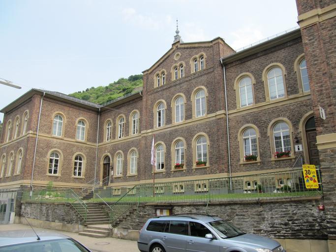 Keywords: Kaub.JPG de 1866-68 wurde auf einem ehemals als Totenhof genutzten Gelände eine Schule als dreiflügeliger Backsteinbau errichtet Es gab fünf Lehrerwohnungen und sechs Schulsäle Später wurde ein teil als Rathaus genutzt own Odu Siaz 2012 Kaub Cc-zero |