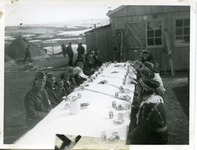 Keywords: andre verdenskrig andreverdenskrig frigjøring feiring vårslipp 2015 vårslipp2015 kautokeino / guovdageainnu kautokeinoguovdageainnu finnmark norge Original bildetekst: Vi stekte vafler, dekket bord ute, kokkene som bor i teltene her, kokte kakao, ellers hadde vi en pakke kjeks, og en plate melkesjokolade til hver. Gjestene kom og man gikk til bords, barn i alle aldre. Fotografiet kommer fra et album gitt til Riksarkivet av sykepleier Marie Lysnes. Våren 1945 deltok hun i opprettelsen av et feltsykehus i Finnmark. Lysnes dokumenterte oppholdet i Finnmark gjennom tekst og bilder. Albumet er en del av privatarkivet etter Marie Lysnes. Arkivreferanse: PA-0873: Lysnes, Marie, Riksarkivet. Original bildetekst: Vi stekte vafler, dekket bord ute, kokkene som bor i teltene her, kokte kakao, ellers hadde vi en pakke kjeks, og en plate melkesjokolade til hver. Gjestene kom og man gikk til bords, barn i alle aldre. Fotografiet kommer fra et album gitt til Riksarkivet av sykepleier Marie Lysnes. Våren 1945 deltok hun i opprettelsen av et feltsykehus i Finnmark. Lysnes dokumenterte oppholdet i Finnmark gjennom tekst og bilder. Albumet er en del av privatarkivet etter Marie Lysnes. Arkivreferanse: PA-0873: Lysnes, Marie, Riksarkivet.