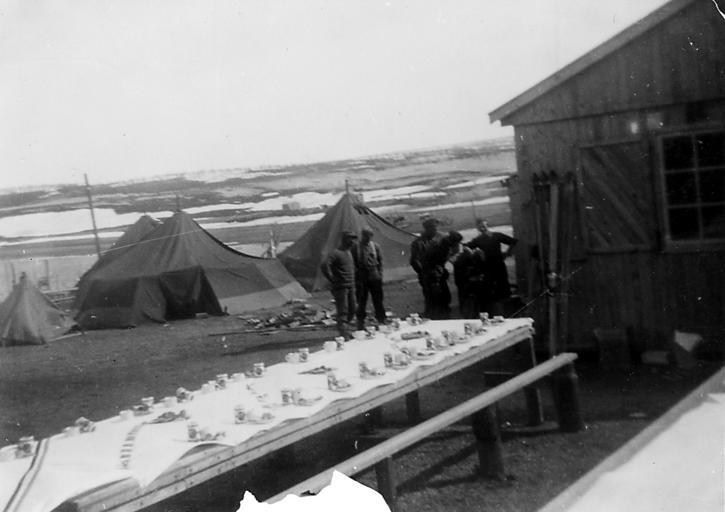 | Keywords: andre verdenskrig andreverdenskrig frigjøring feiring vårslipp 2015 vårslipp2015 kautokeino / guovdageainnu kautokeinoguovdageainnu finnmark norge blackandwhite monochrome outdoor black and white Original bildetekst: Vi stekte vafler, dekket bord ute, kokkene som bor i teltene her, kokte kakao, ellers hadde vi en pakke kjeks, og en plate melkesjokolade til hver. Gjestene kom og man gikk til bords, barn i alle aldre. Fotografiet kommer fra et album gitt til Riksarkivet av sykepleier Marie Lysnes. Våren 1945 deltok hun i opprettelsen av et feltsykehus i Finnmark. Lysnes dokumenterte oppholdet i Finnmark gjennom tekst og bilder. Albumet er en del av privatarkivet etter Marie Lysnes. Arkivreferanse: PA-0873: Lysnes, Marie, Riksarkivet. Original bildetekst: Vi stekte vafler, dekket bord ute, kokkene som bor i teltene her, kokte kakao, ellers hadde vi en pakke kjeks, og en plate melkesjokolade til hver. Gjestene kom og man gikk til bords, barn i alle aldre. Fotografiet kommer fra et album gitt til Riksarkivet av sykepleier Marie Lysnes. Våren 1945 deltok hun i opprettelsen av et feltsykehus i Finnmark. Lysnes dokumenterte oppholdet i Finnmark gjennom tekst og bilder. Albumet er en del av privatarkivet etter Marie Lysnes. Arkivreferanse: PA-0873: Lysnes, Marie, Riksarkivet. |