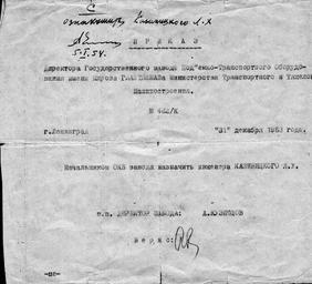 MAKE A MEME View Large Image Kaz002.jpg ru П иказ о назначение Л Е Казиницкого начальником ОКБ завода им Ки ова 1953 год 2012-06-30 Из а хивов музея Пет ишуле -  евский п ...