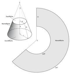Keywords: Kegelstumpf mit Mantel.svg en Right truncated cone with lateral area de Gerader Kegelstumpf mit Mantelfläche own Oldracoon 2010-10-17 Truncated cones