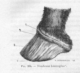 MAKE A MEME View Large Image KeratogeneChauveau1890MeyCh.jpg en The keratogenous membrane of the horse Equus caballus fr La membrane kératogène du cheval Equus caballus -1 bourrelet périoplique -2 bourrelet principal ou cutical -3 podophylle tissu podophylleux ou ...