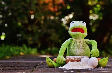 Keywords: kermit bake rolling pin egg flour ingredients prepare preparation roll out frog funny cute