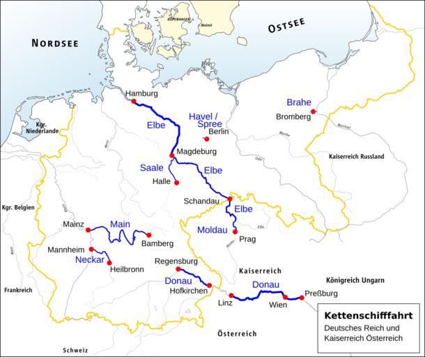 | Keywords: Kettenschifffahrt Deutsches Reich.svg Verbreitung der Kettenschifffahrt im Deutschen Reich und im Kaiserreich Österreich 2011-07-11 selbst erstellt Vorlage File Deutsches Reich1 svg von User Ziegelbrenner salino01 Released into the public domain by the author PD-release Chain ships |
