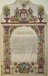 Keywords: Ketubah, Verona, Italy, 1678 - Google Art Project.jpg 7016003 Unknown /collection/the-jewish-museum-london/artwork/ketubah-verona-italy-1678-unknown/6948936/ 8609 author /collection/the-jewish-museum-london/ The Jewish Museum London 437133 http //www jewishmuseum org uk/ 3/13/2012 1 50 14 PM /collection/the-jewish-museum-london/artwork/ketubah-verona-italy-1678-unknown/6948936/ 1678 1678 865 6948936 False 1678 3/25/2012 3 51 08 PM JM 467 http //www jewishmuseum org uk/search-our-collections-new adlibid 8609 offset 0 http //www jewishmuseum org uk/collections-and-picture-library-new Digital image Jewish Museum London ketubah 1670 1680 Verona production w550 x h865 mm 1678 False 0 6328125 text ketubah-verona-italy-1678-unknown Ketubah Verona Italy 1678 k 550 Gift of Ben Uri Gallery JM 467 special url_id 8AG5qPks3J4MLw PD-old-100 Jewish Museum London Google Art Project works by unknown artist |