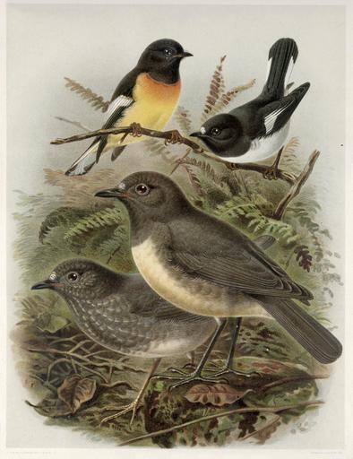| Keywords: Shows tomtits in foreground and robins on a branch above, in a bush setting Quantity: 1 colour art print(s) in book.. Physical Description: Lithograph, coloured 273 x 204 mm. Keulemans, John Gerrard, 1842-1912. Keulemans, John Gerrard, 1842-1912 :South Island tomtit, myiomoira macrocephala. North Island tomtit, myiomoira toitoi. North Island robin, miro australia. South Island robin, miro albifrons. / J. G. Keulemans delt. & lith. Judd & Co. [Plate V. 1888].. Buller, Walter Lawry (Sir) 1838-1906 :A history of the birds of New Zealand. 2d ed. London, John van Voorst, 1888.. Ref: PUBL-0012-05. Alexander Turnbull Library, Wellington, New Zealand. natlib.govt.nz/records/22884548 Shows tomtits in foreground and robins on a branch above, in a bush setting Quantity: 1 colour art print(s) in book.. Physical Description: Lithograph, coloured 273 x 204 mm. Keulemans, John Gerrard, 1842-1912. Keulemans, John Gerrard, 1842-1912 :South Island tomtit, myiomoira macrocephala. North Island tomtit, myiomoira toitoi. North Island robin, miro australia. South Island robin, miro albifrons. / J. G. Keulemans delt. & lith. Judd & Co. [Plate V. 1888].. Buller, Walter Lawry (Sir) 1838-1906 :A history of the birds of New Zealand. 2d ed. London, John van Voorst, 1888.. Ref: PUBL-0012-05. Alexander Turnbull Library, Wellington, New Zealand. natlib.govt.nz/records/22884548 |