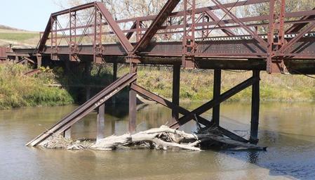 | Keywords: Keya Paha Lewis Bridge pier.JPG  92000774 Lewis Bridge located near the state line separating w Keya Paha County Nebraska from Tripp County South Dakota The bridge carries an unpaved county road across the Keya Paha River At the bridge the river runs roughly from southwest to northeast The photo shows the pier in the middle of the river between the two truss spans; upstream is left The bridge is listed in the National Register of Historic Places own Ammodramus 2010-10-11 Cc-zero Pictures by Ammodramus Taken with Panasonic Lumix DMC-FZ20 Lewis Bridge Keya Paha River  |